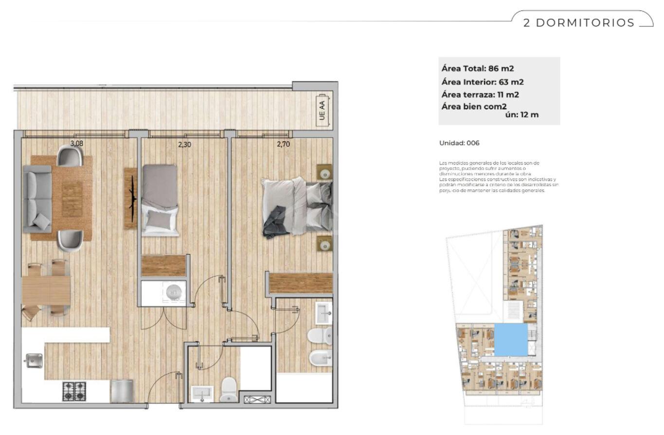 Completo apartamento a estrenar de 2 dormitorios y 2 baños (uno en suite).La cocina es integrada al living-comedor y balcón todo a lo ancho con salida desde living y dormitorios!