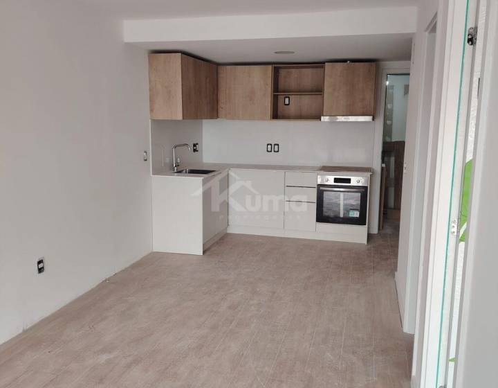 Al entrar se encuentra la cocina integrada con mesada y barra integrada al área social con salida al balcón.