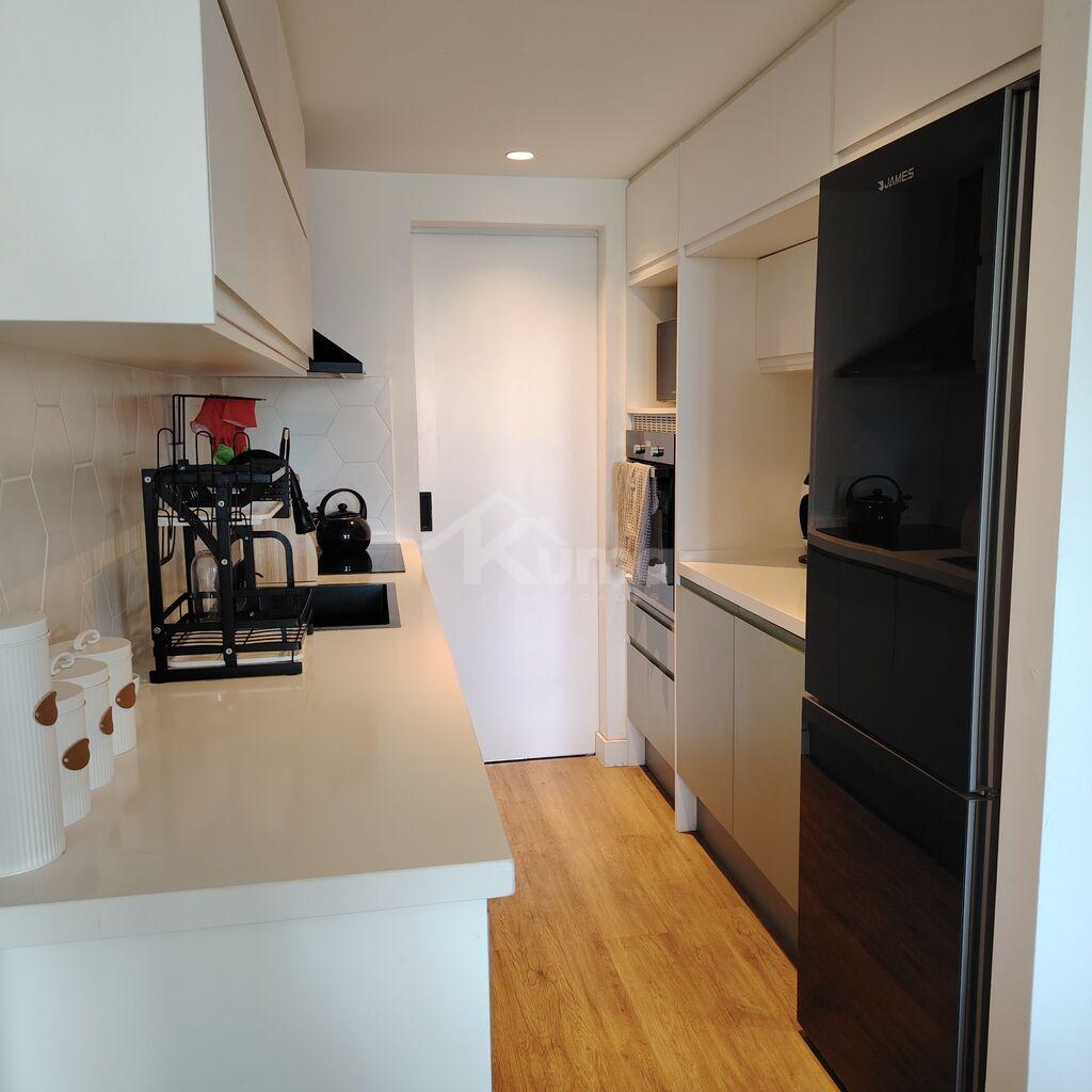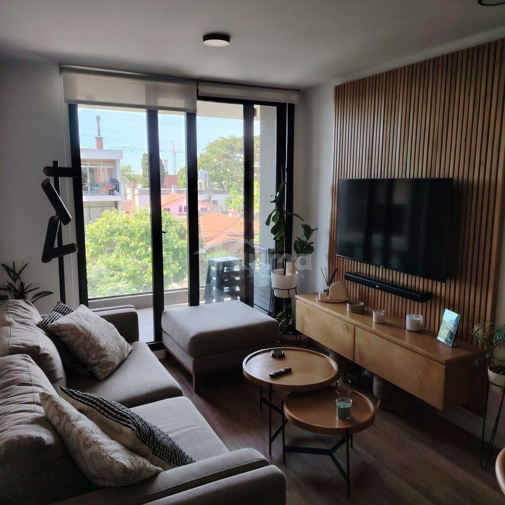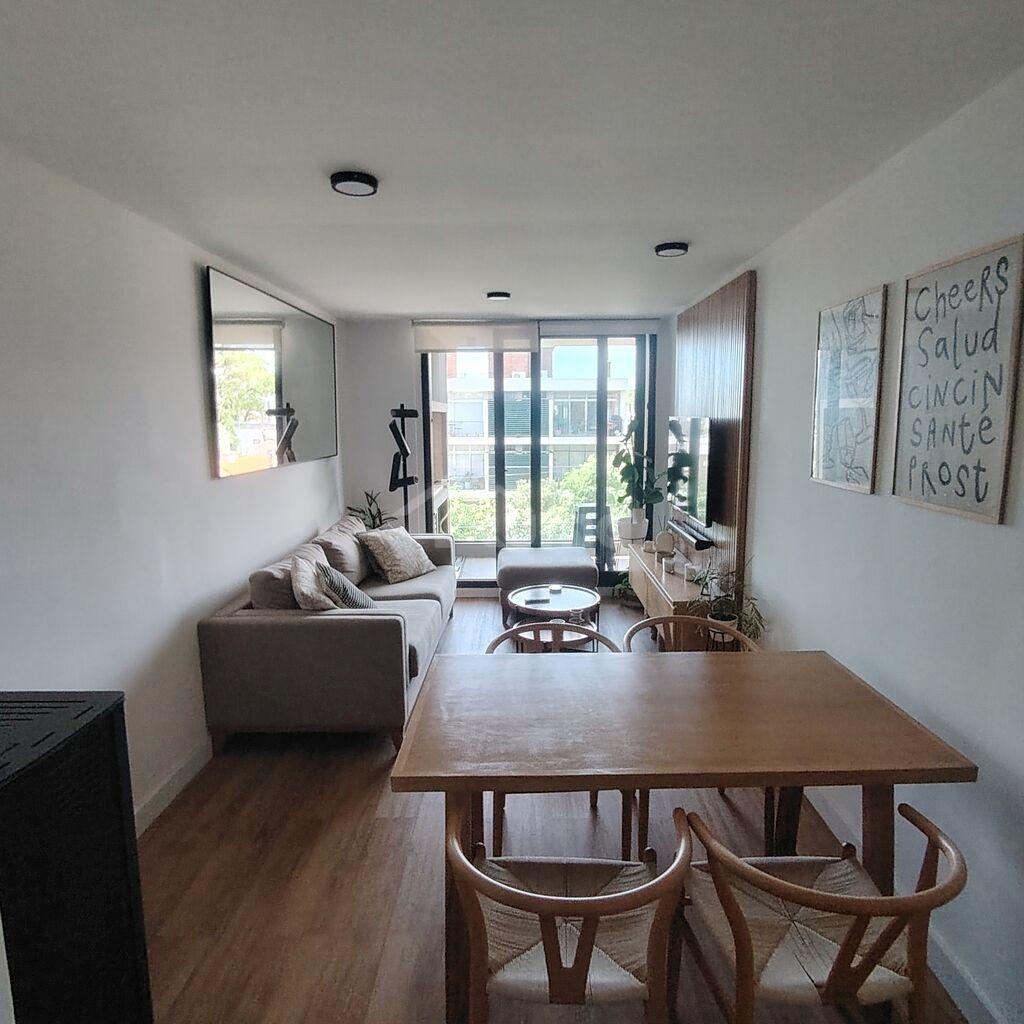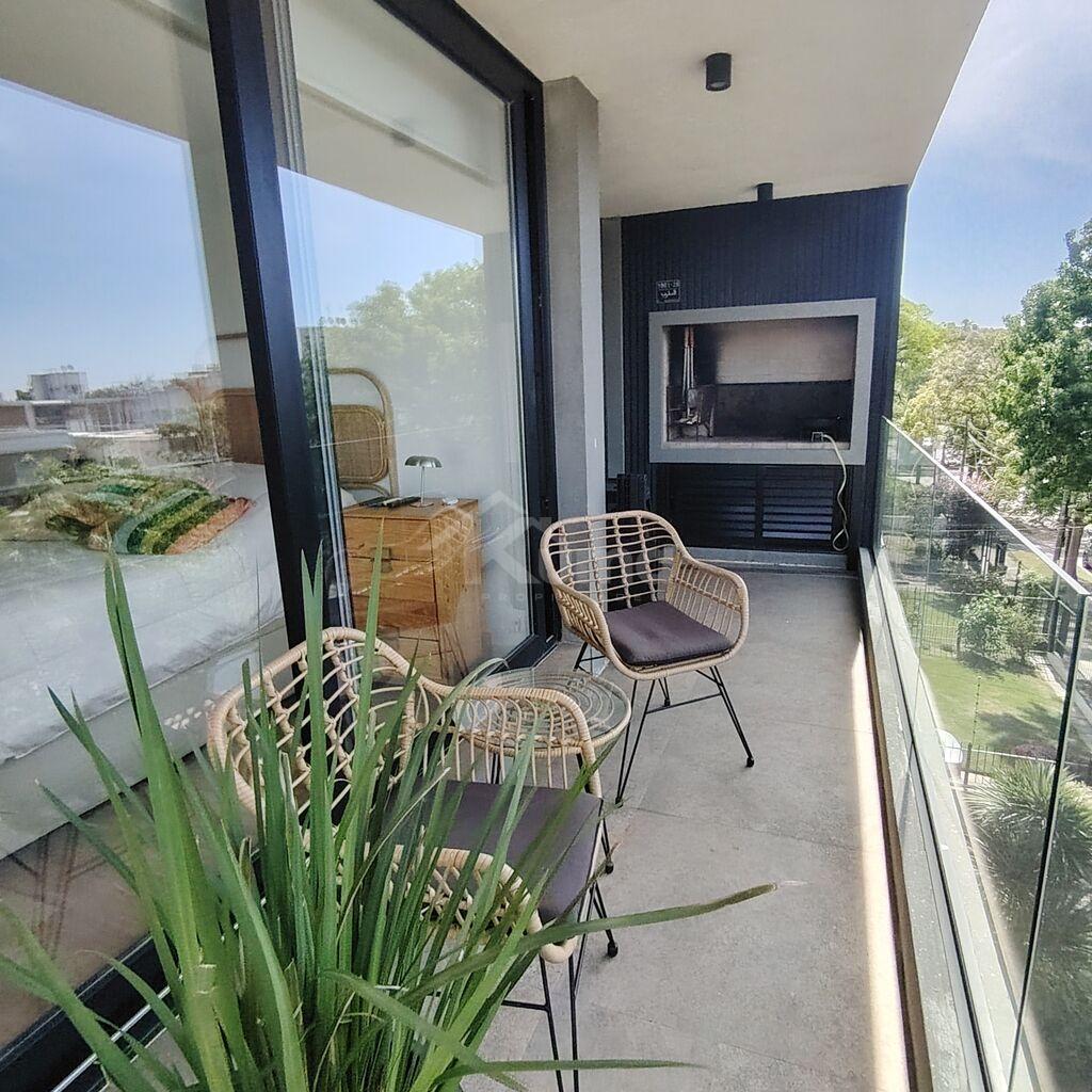 El área social se compone de un living-comedor con estufa a pellets, con salida directo al balcón y cocina integrada con doble mesada con alacena anexada.