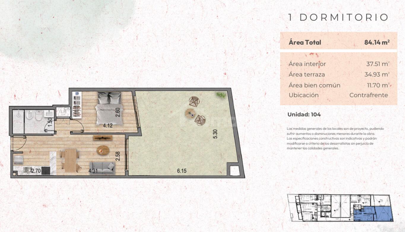 En total son 72m2, de los cuales 37m2 son interiores + 35m2 de patio!