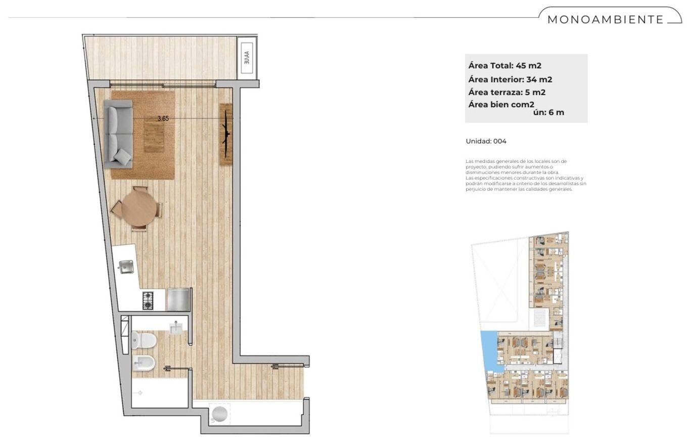 Completo y amplio monoambiente a estrenar en POCITOS NUEVO!En total son 39m2, 34m2 interiores + 5m2 de balcón.