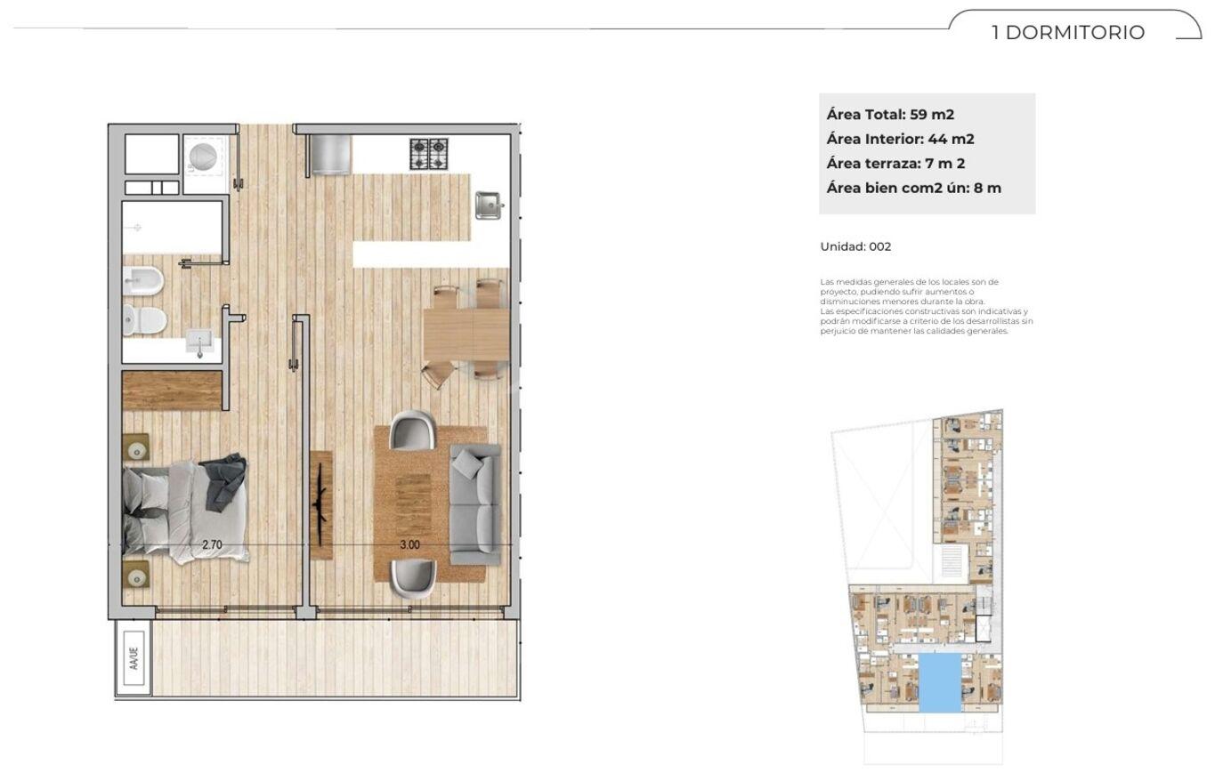 Completo apartamento a estrenar de 1 dormitorios con garaje en POCITOS NUEVO!La cocina es integrada al living-comedor y balcón todo a lo ancho con salida desde living y dormitorio!