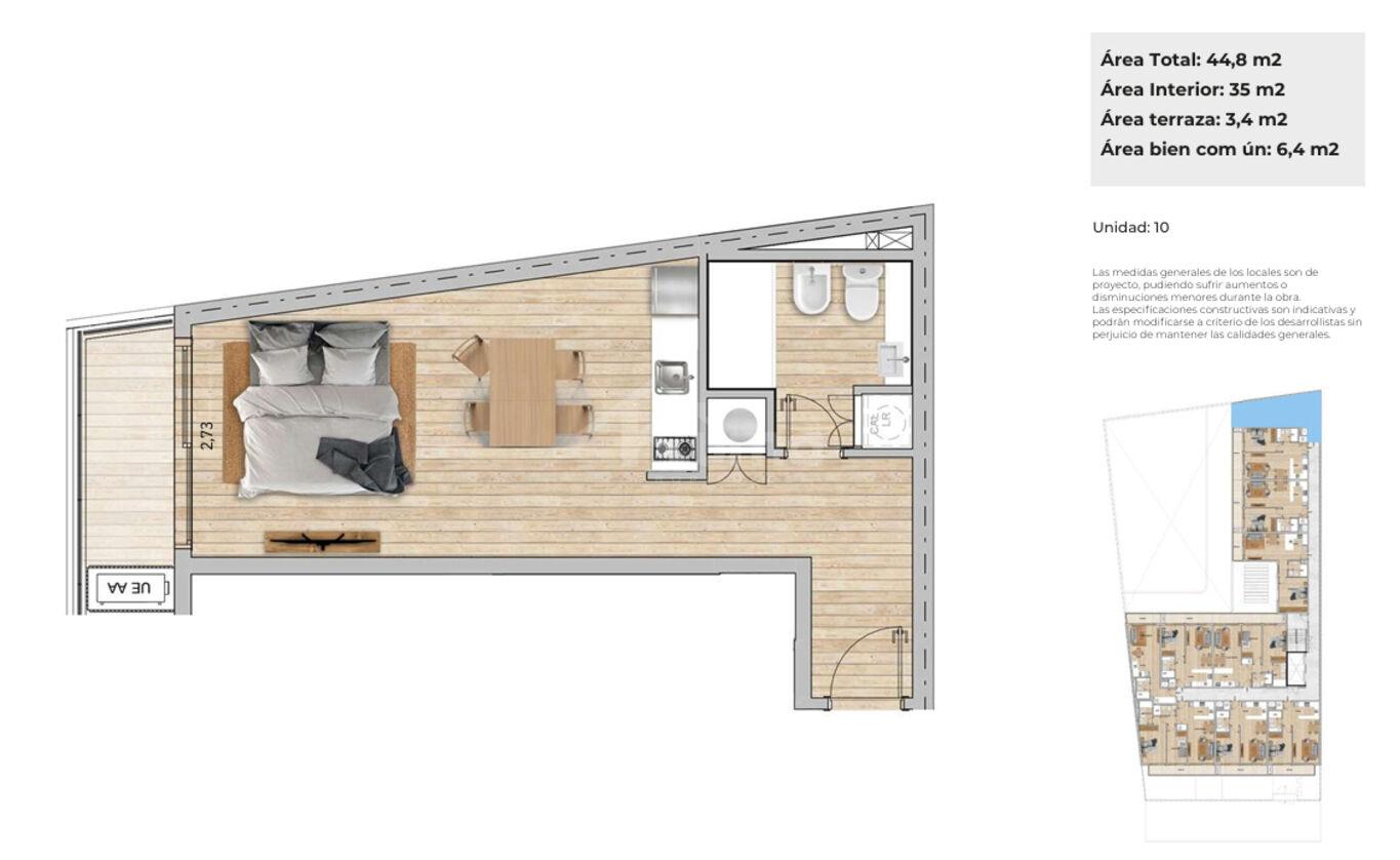 Completo y amplio monoambiente a estrenar en POCITOS NUEVO!En total son 38m2, 35m2 interiores + 3,5m2 de balcón.