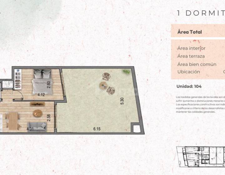 En total son 39m2 interiores + 7m2 de terraza!